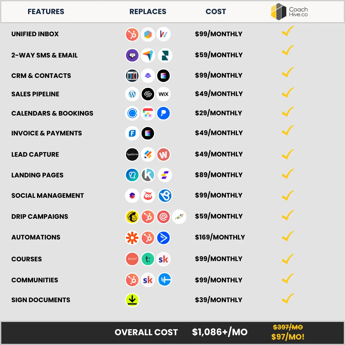 Coach Hive replaces the core functionality (and costs!) of all this software & so much more!